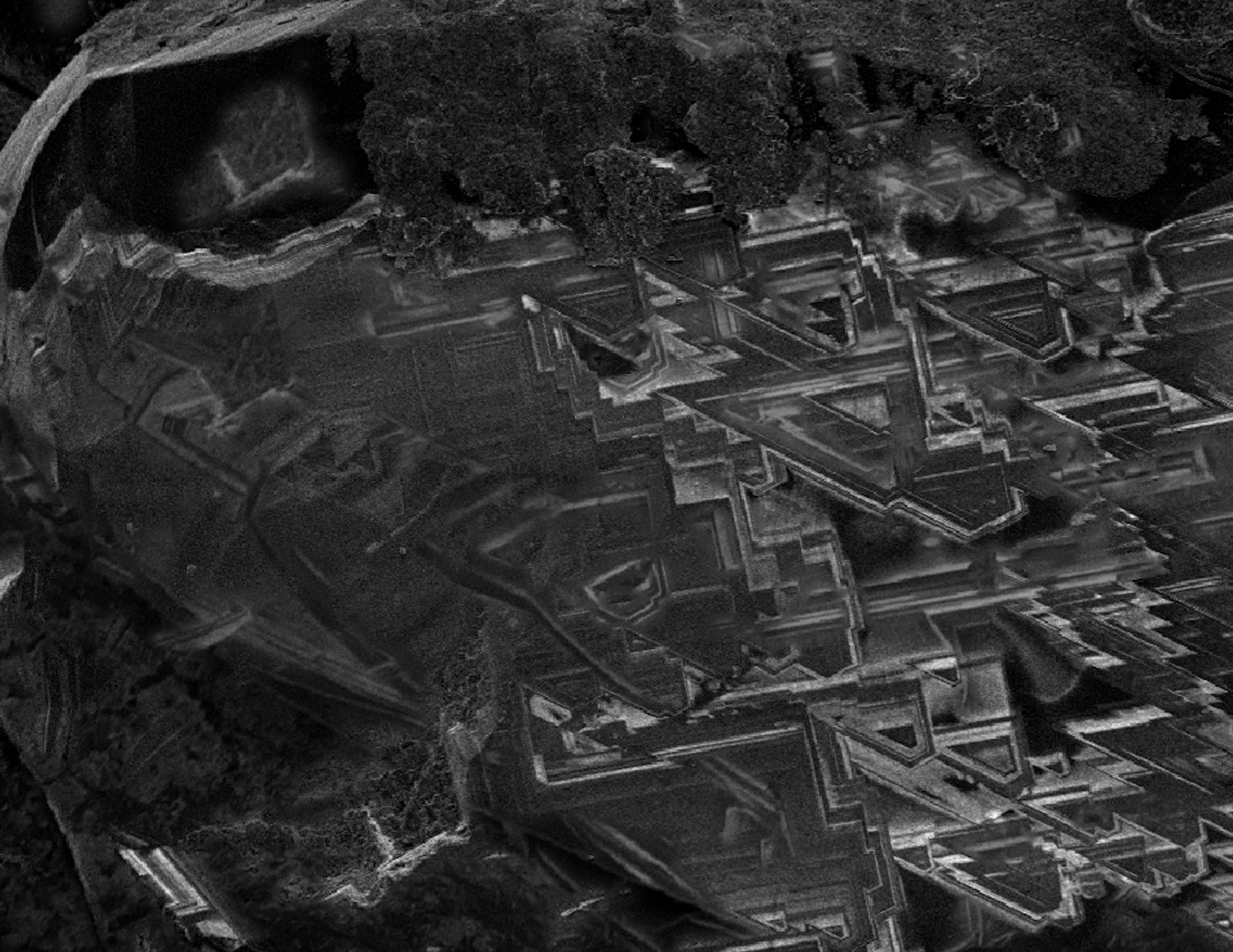 Natural brown diamond as seen in a Scanning Electron Microscope (SEM) at 50x